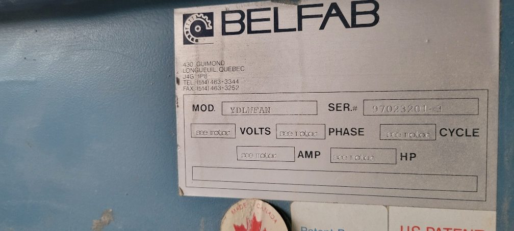 Dépoussiéreur Belfab YDLW 10 hp. 5000 cfm.
