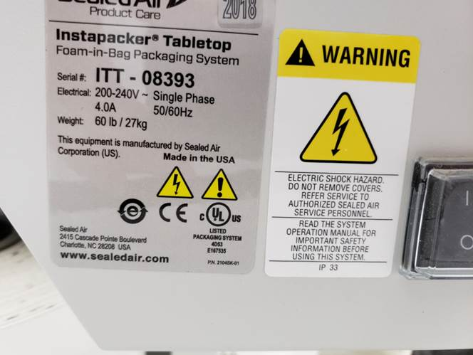 Ensemble compet et prêt à l’utilisation d’une machine Sealed Air Instapacker Tabletop presque neuve.
