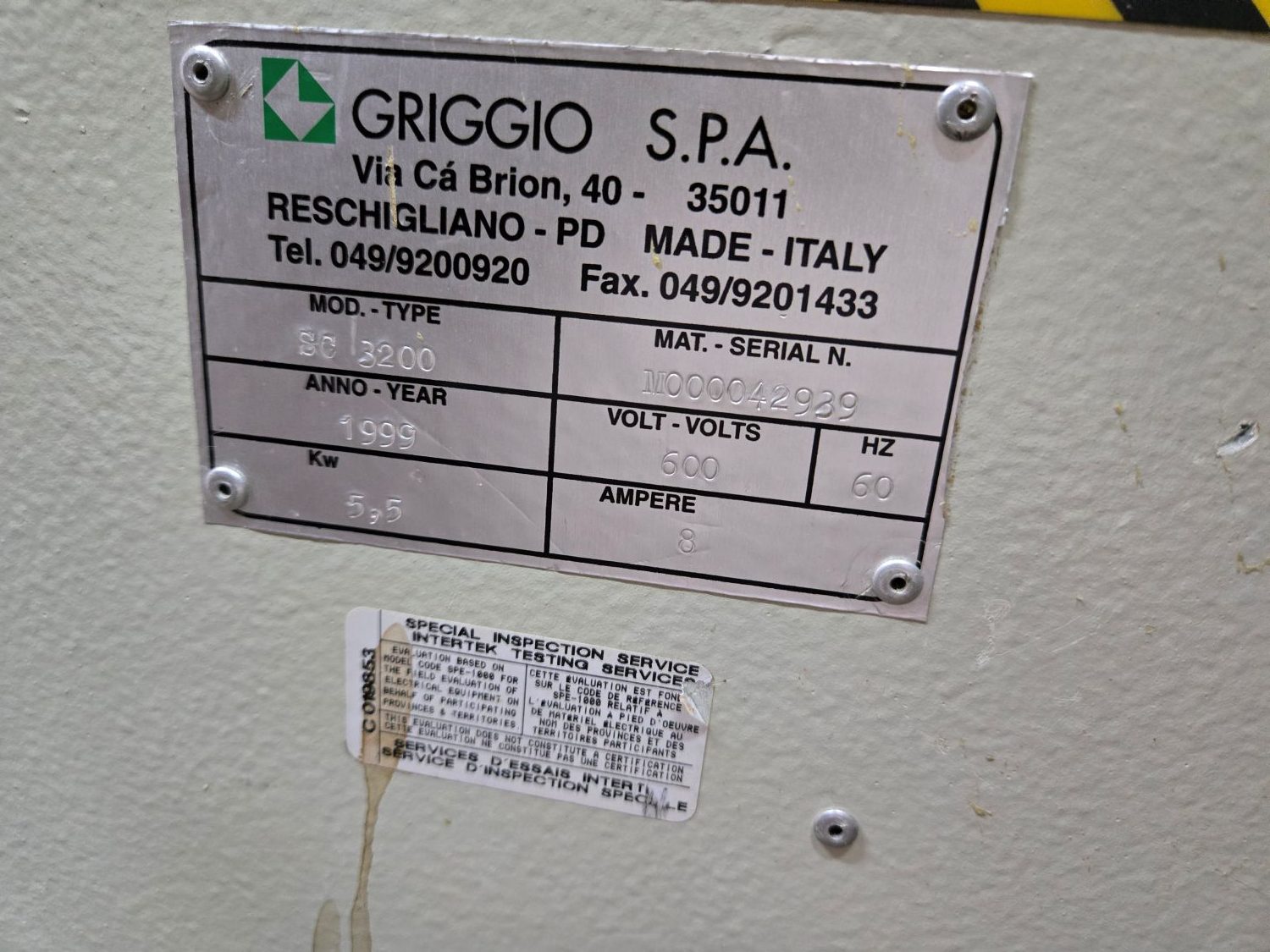 Banc de scie industriel Griggio en très bonne état